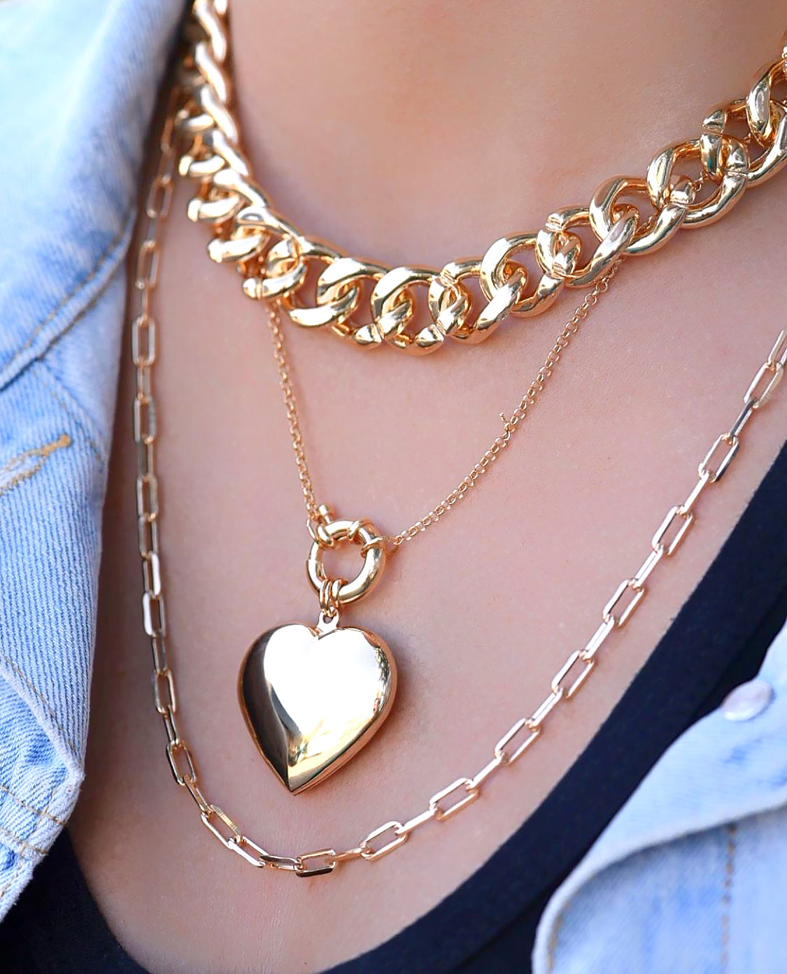 This trend is present on every catwalk. Chain links are worn disproportionately wide, on choker necklaces or maxi bracelets, and infuse a touch of streetwear to a sophisticated look reminiscent of the reign of the curb chain.