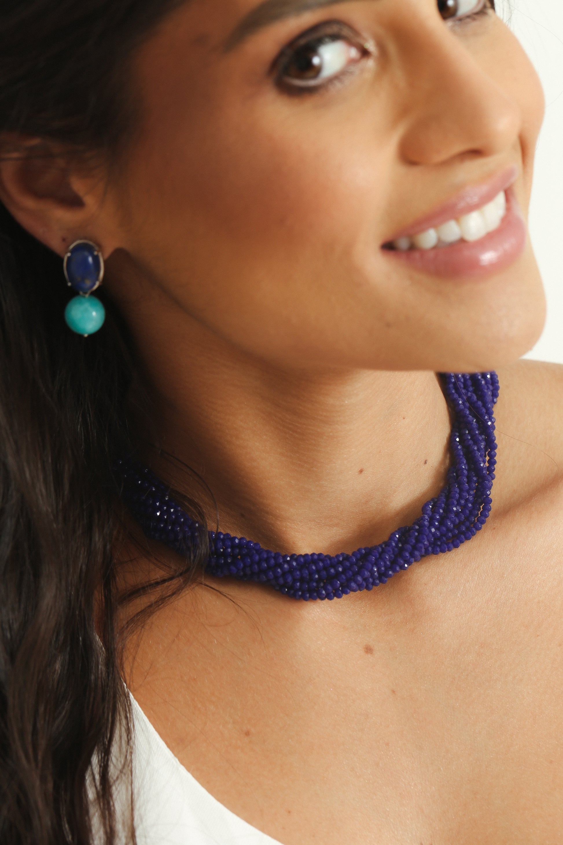 10 Layer Torsade Necklace 44cm. Multi-layer bead necklace, ten 3MM layers.