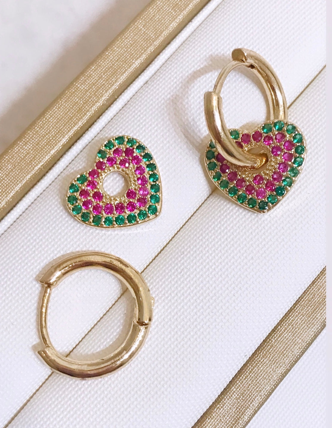 Gold Plated 2 in 1 Color Heart Hoop Earring 20mm (15mm hoop)