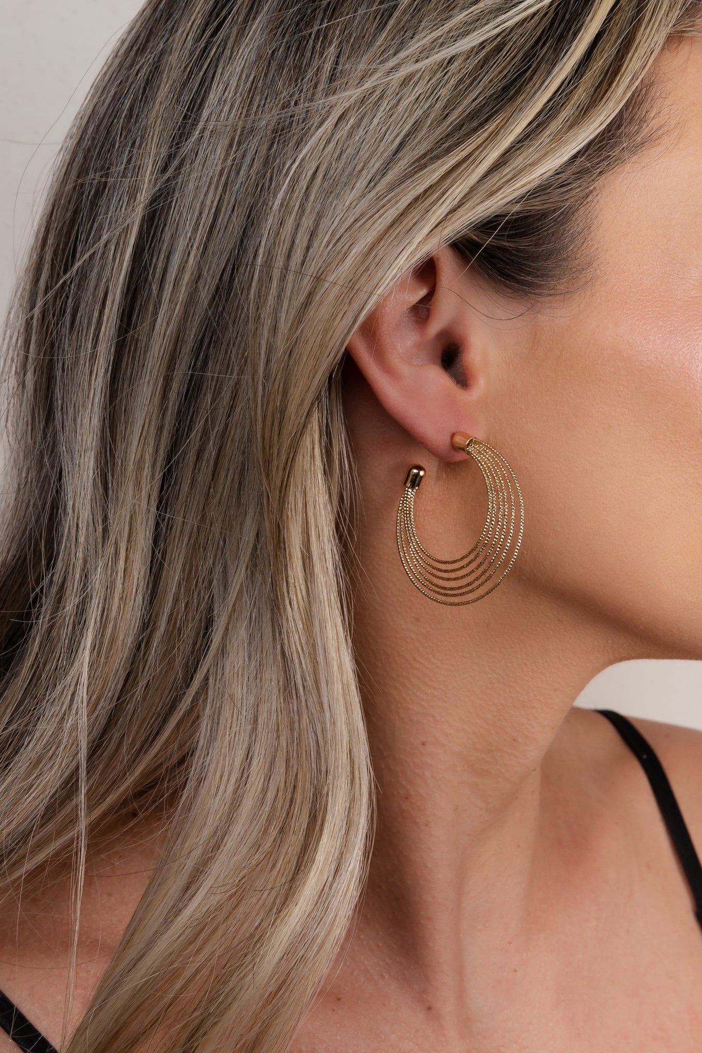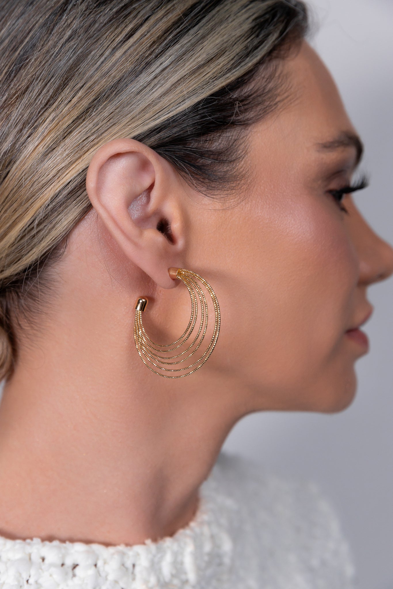 Gold Plated 6 Lines Shinny Earring. 43mm diameter, very light weight.