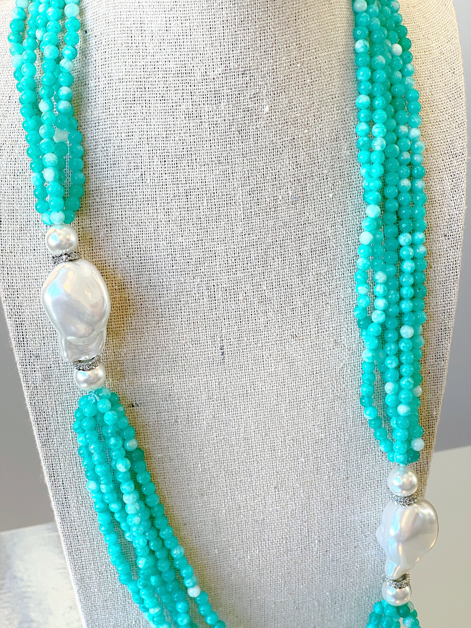 Baroque Pearl Long Torsade Necklace 80cm. Multi-layer bead necklace, five 3MM layers.