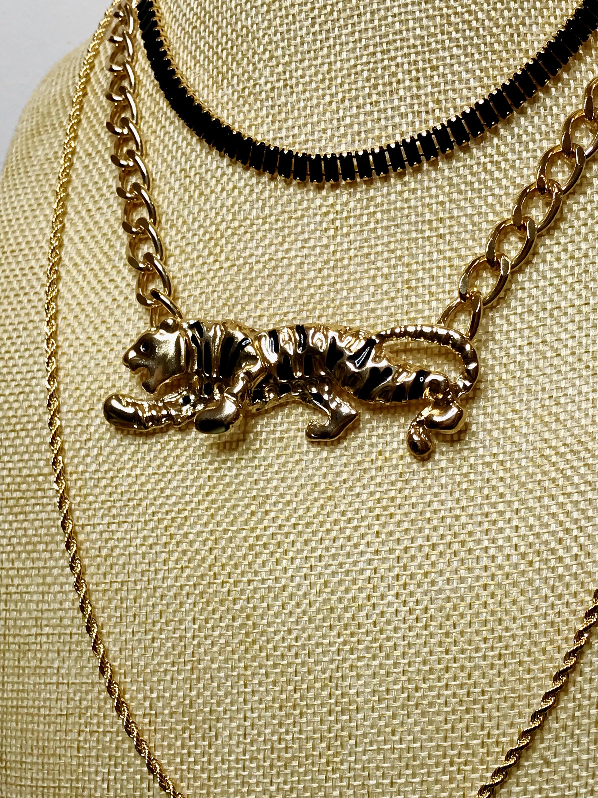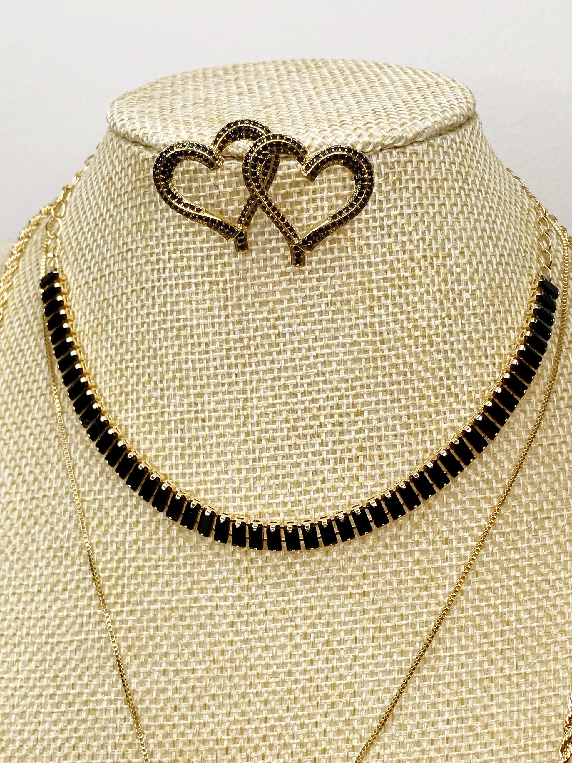 Gold Plated Black Baguette Zirconia Riviera. The necklace is 38cm adjustable