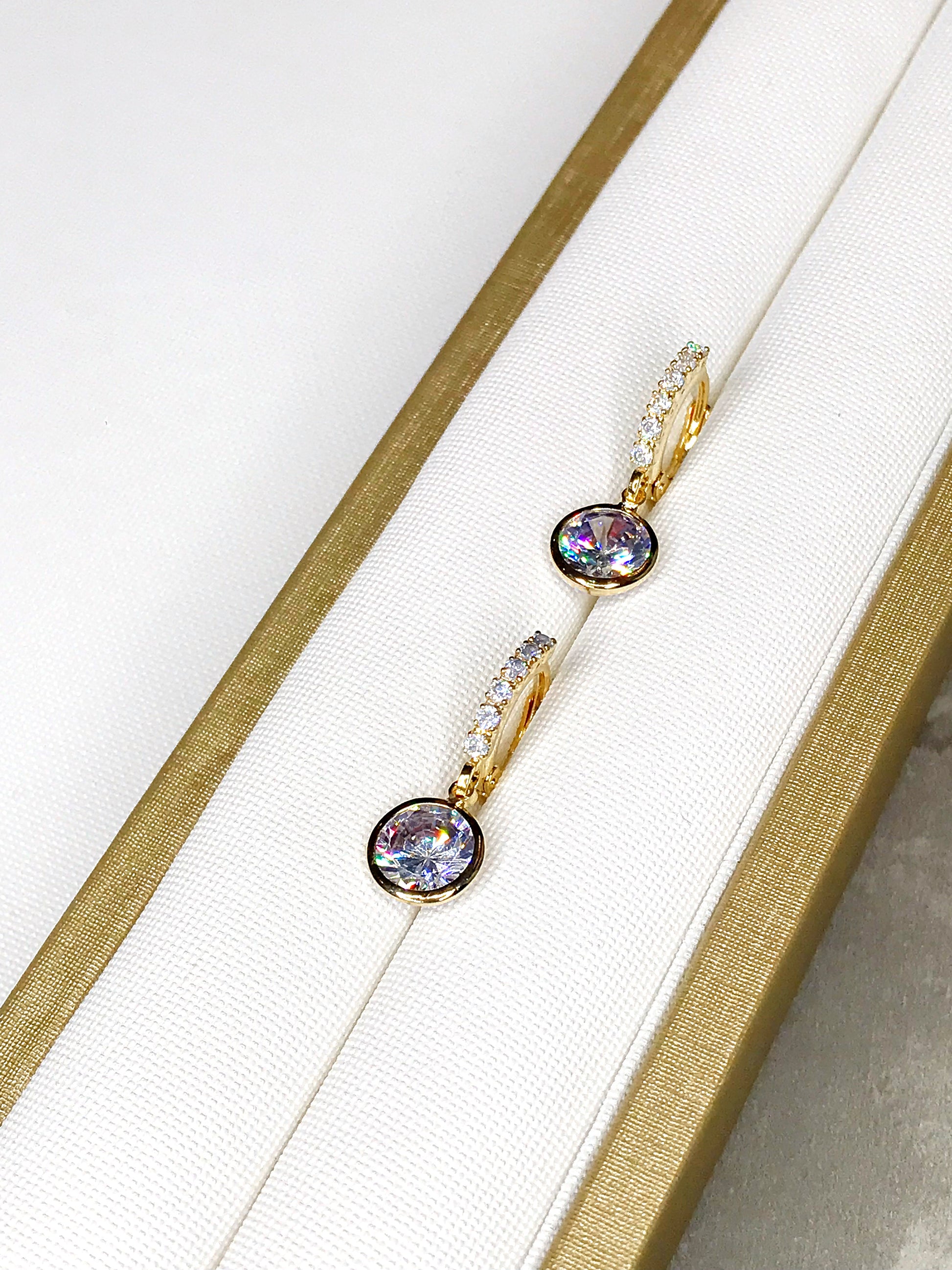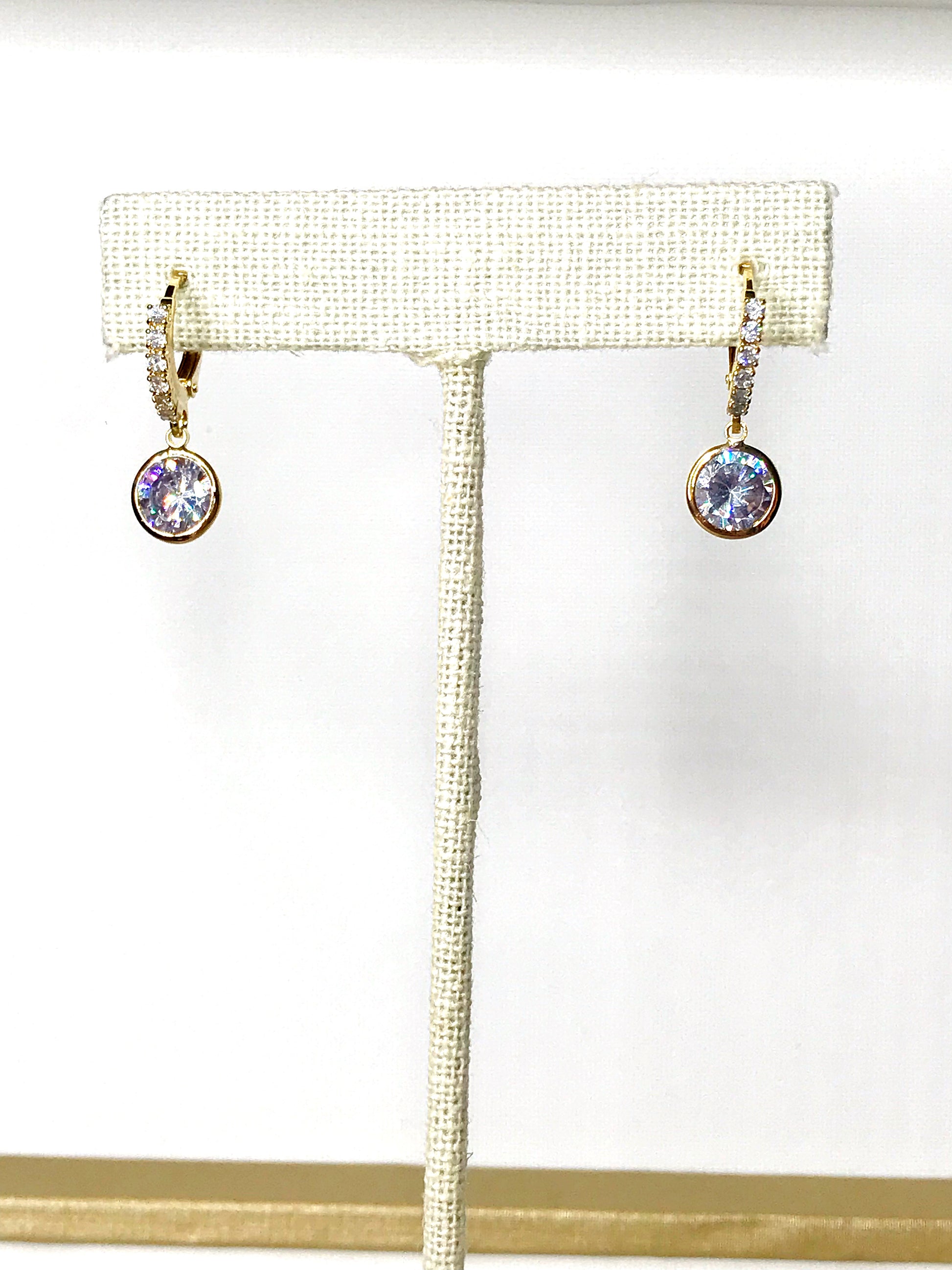 Gold Plated Crystal Dangle Hoop Earring 12mm hoop 8mm crystal dangle.