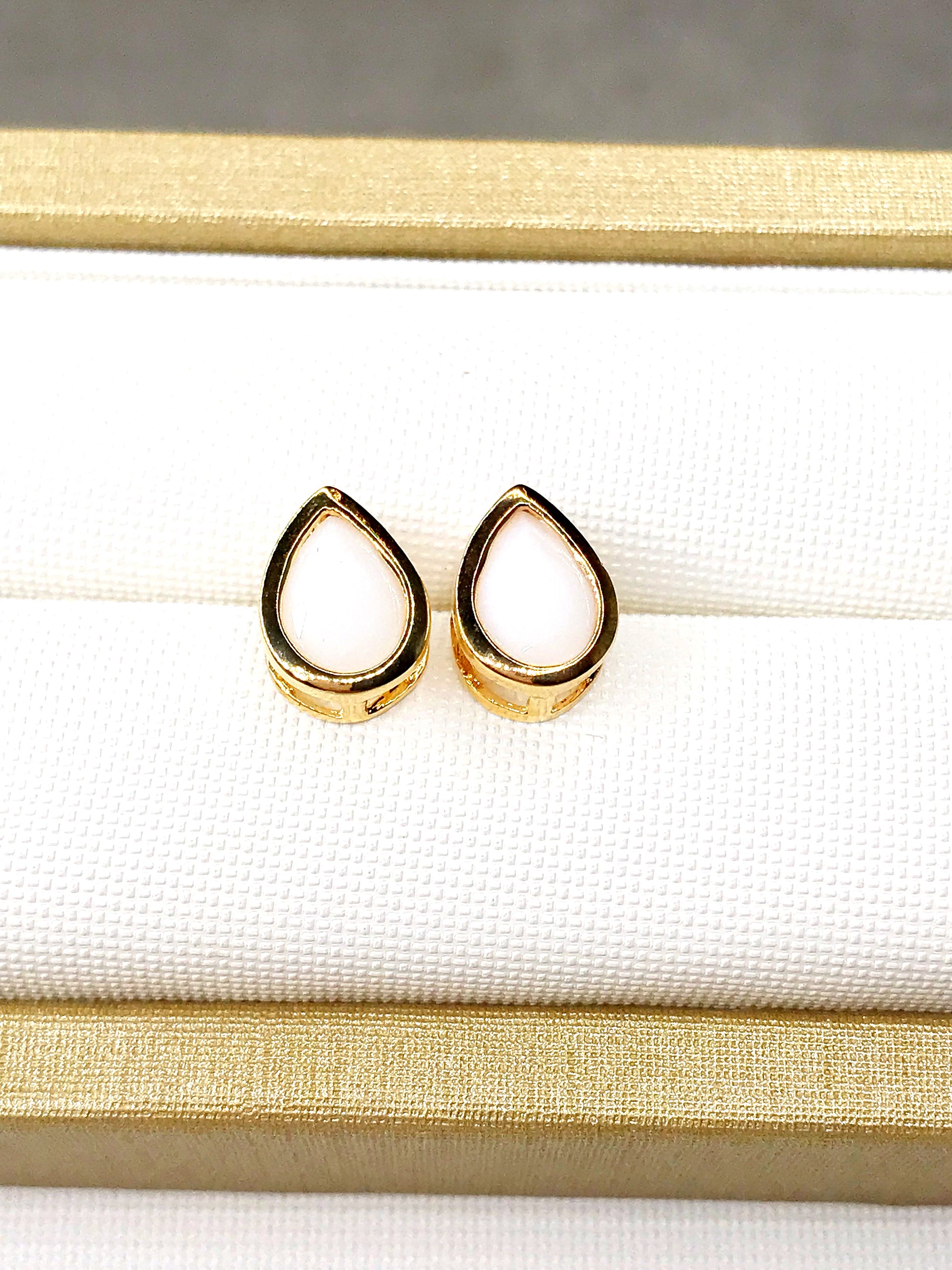 Gold Plated Droplet White Earring. Studded with colored zirconia. 10mm