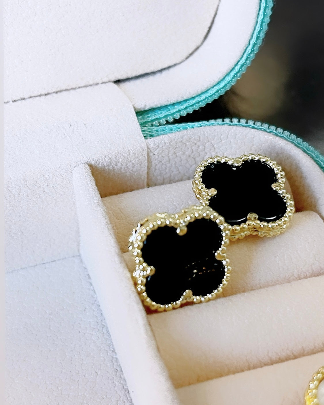 Gold Plated Inspiration Flower Gemstone VC Designer Earring. 11mm - Inspired by a famous designer brand. Real Gemstone.