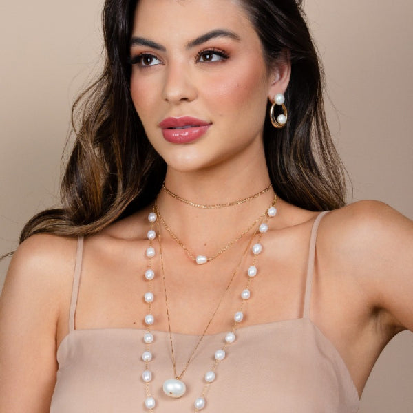 Gold Plated Fresh Water Long Pearl Necklace 82cm