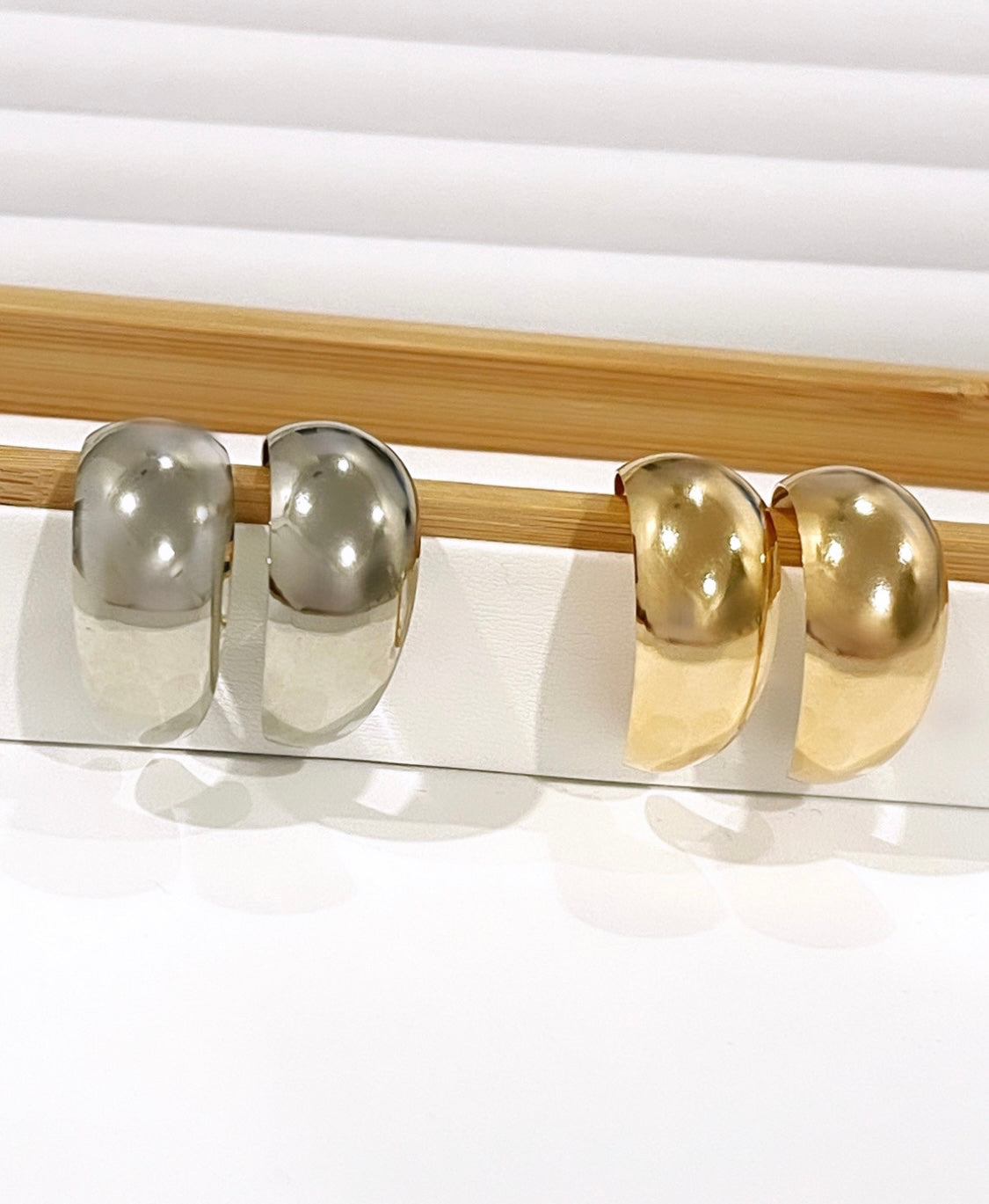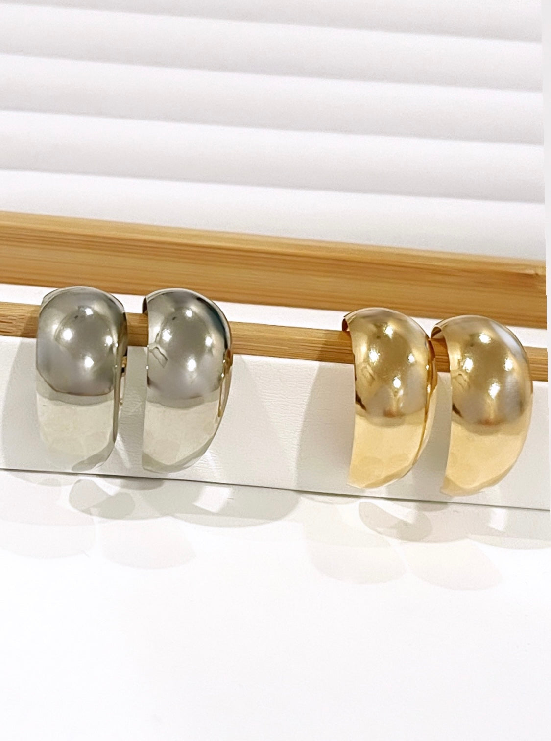 Gold Plated and Plated Rhodium Glossy Wide Hoop Earring. 24mm and 12mm wide in the middle.
