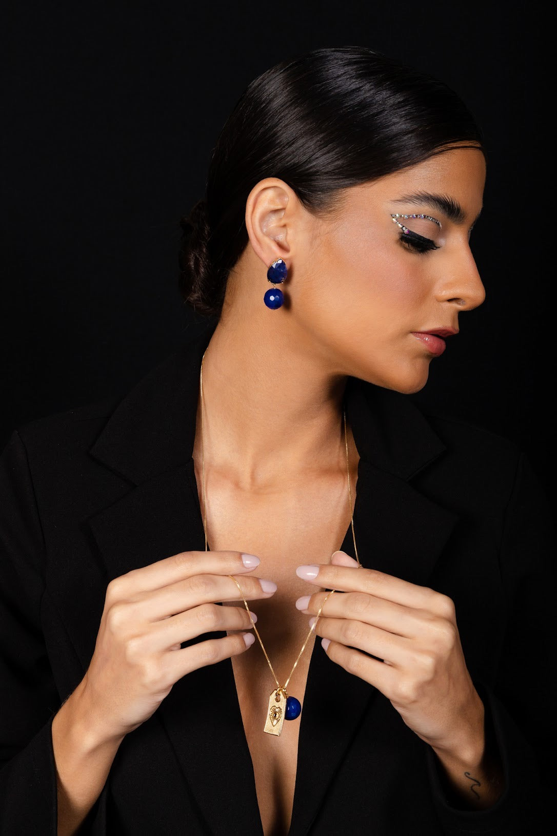 Long Blue Jade Heart Evil Eye Plaque Necklace
