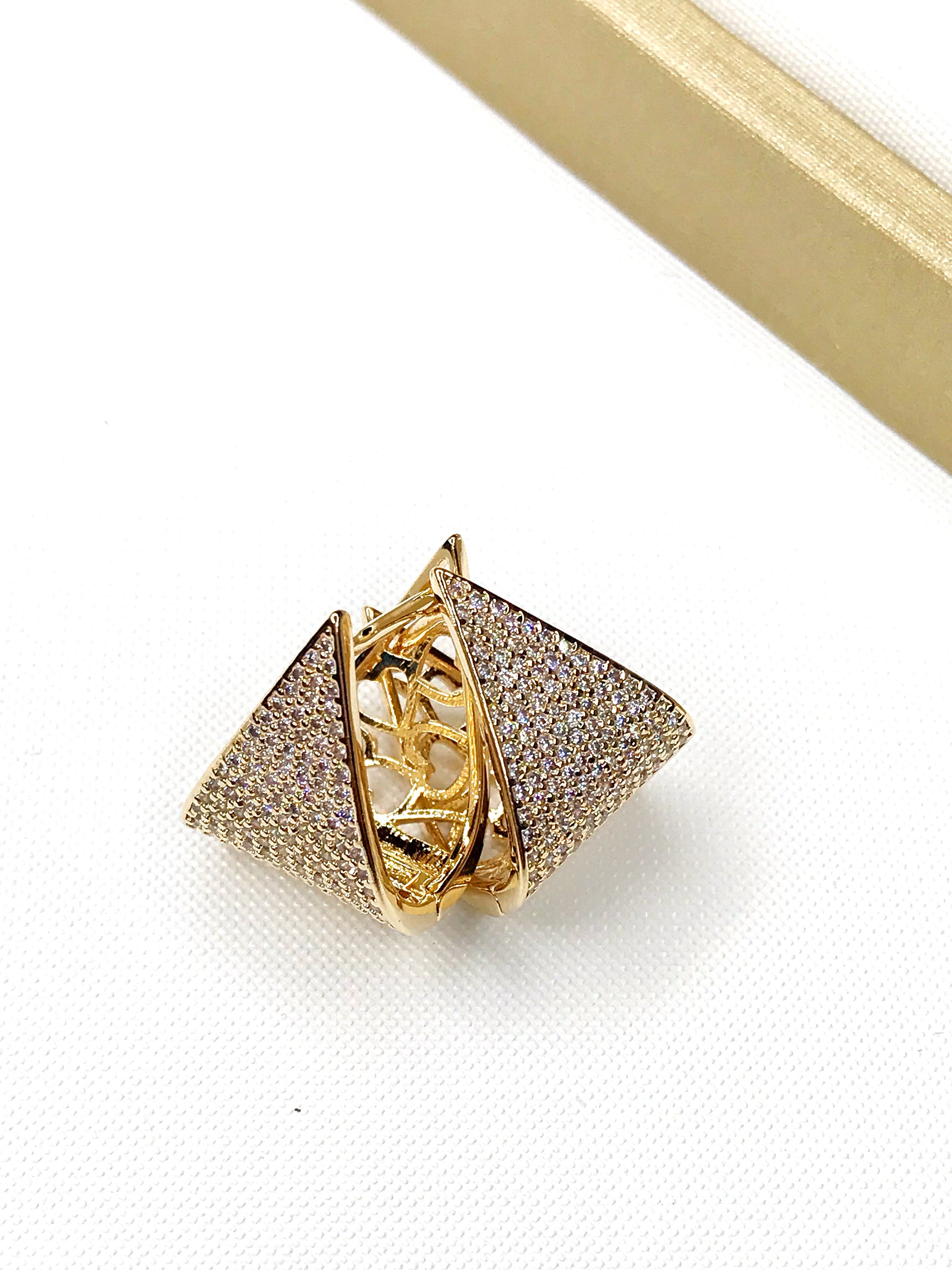 Gold Plated Lux Pave Triangle Earring. 16x15mm fully studded with micro zirconias.