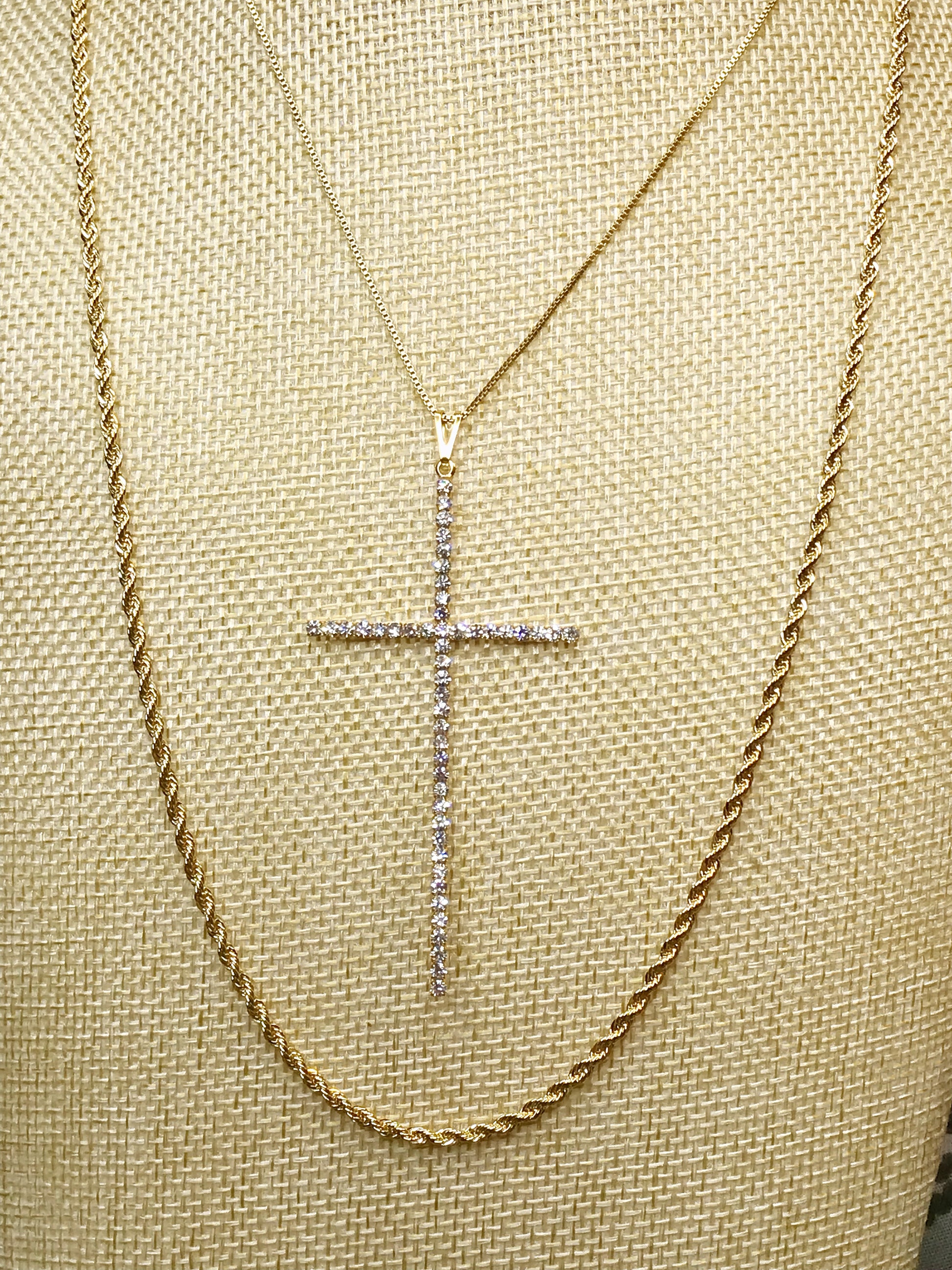 Gold Plated Maxi Cross Pave Necklace and Earring Set. The necklace chain is 40cm long + 5cm extensor, and the pendant is 63mm.