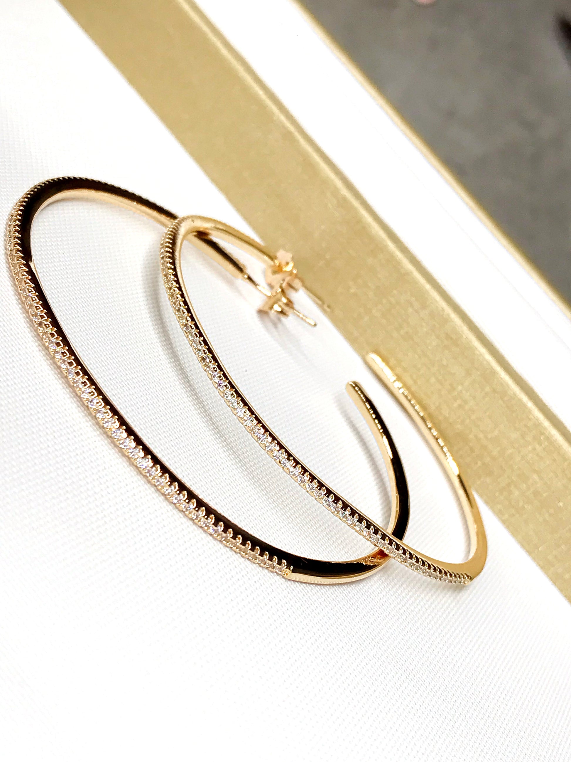 Gold Plated Maxi Traditional Pave Hoop Earring 57mm