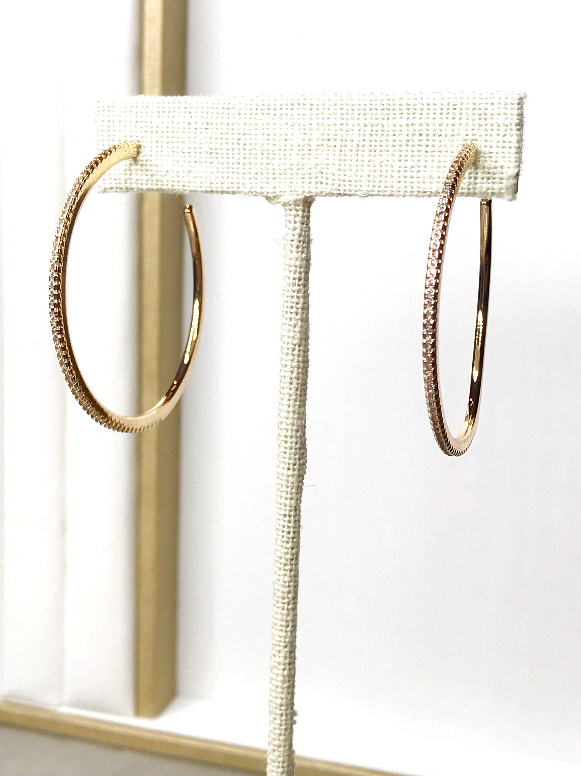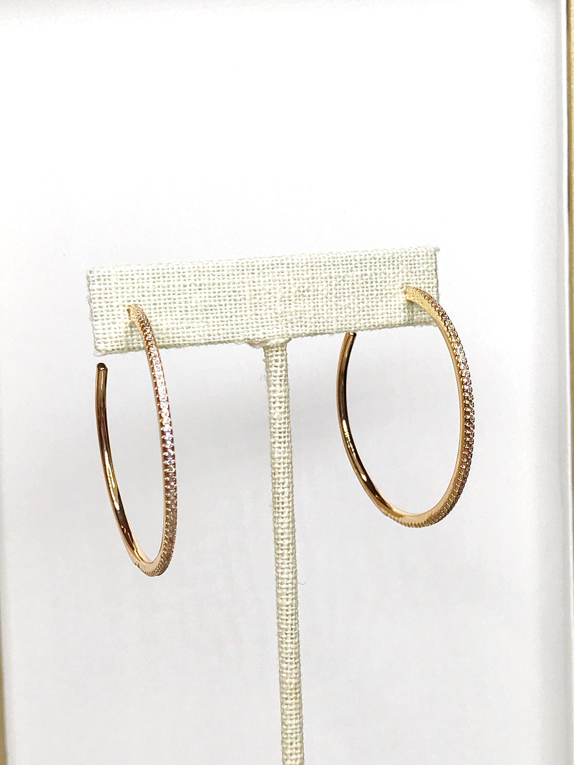 Gold Plated Medium Oval Pave Hoop Earring 33mm