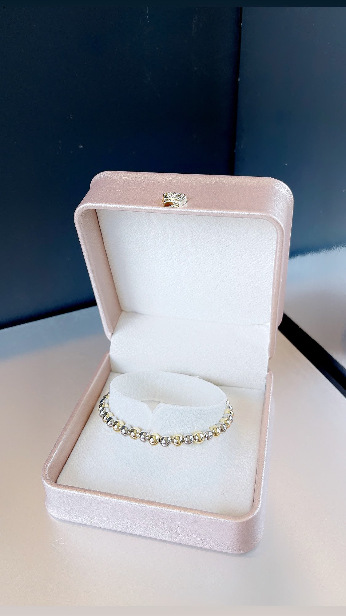 Gold and Rhodium Plated Metal Beads Bracelet - stretchy elastic/silicone string
