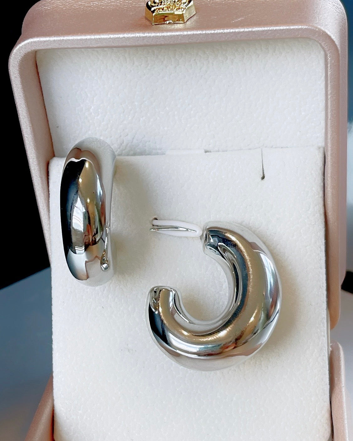 Rhodium Plated Oval Tube Hoop Earring. 29mm