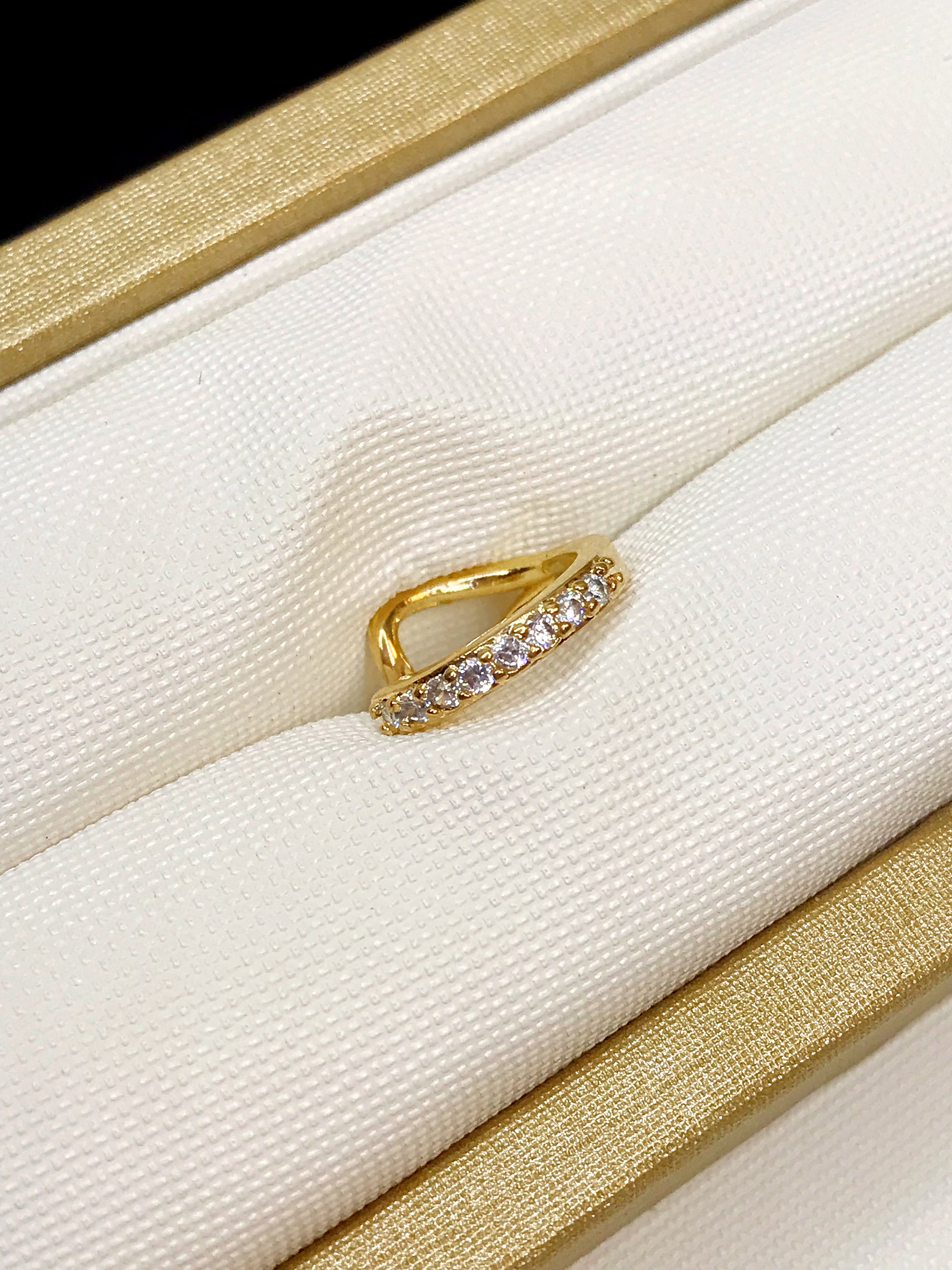 Gold Plated Pave Fake Piercing. Clip Earring, no hole necessary.