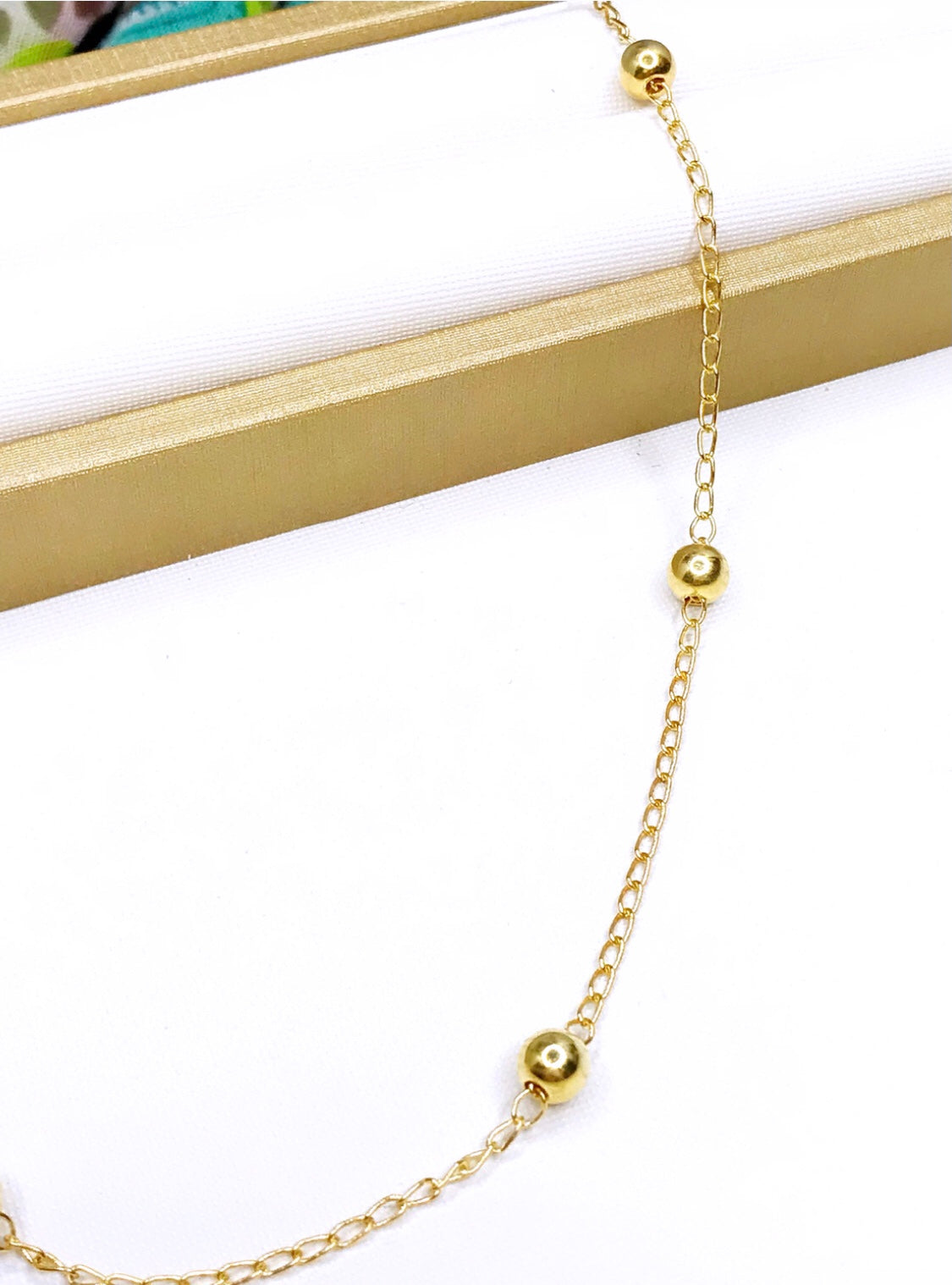 Gold Plated Petit Spheres Long Necklace. The necklace is 60CM long.