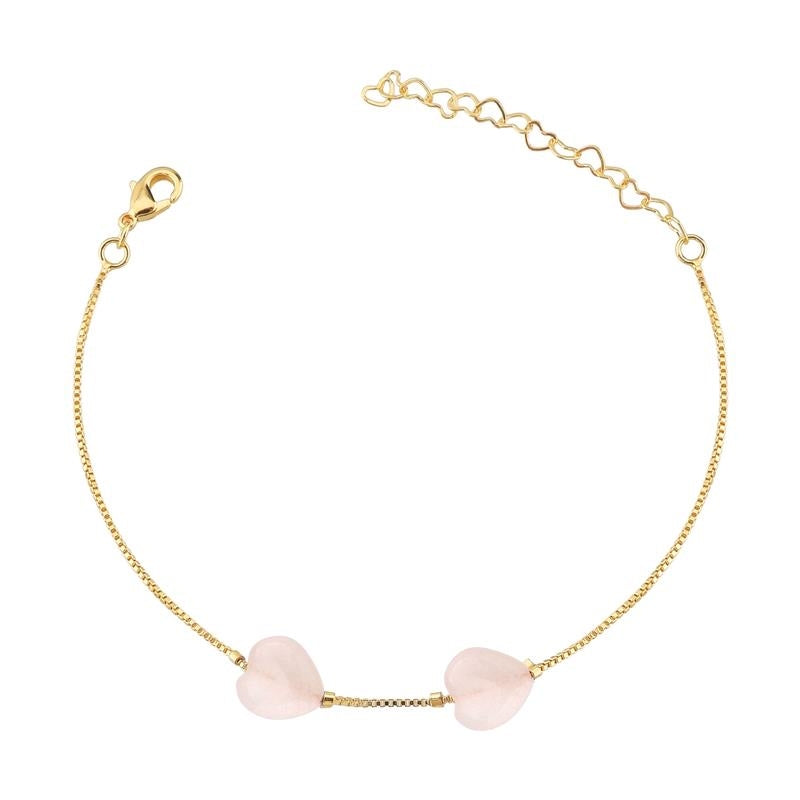 Gold Plated Quartz Heart Bracelet 16cm + 5cm extensor. 2 Real Gemstone in the shape of a heart