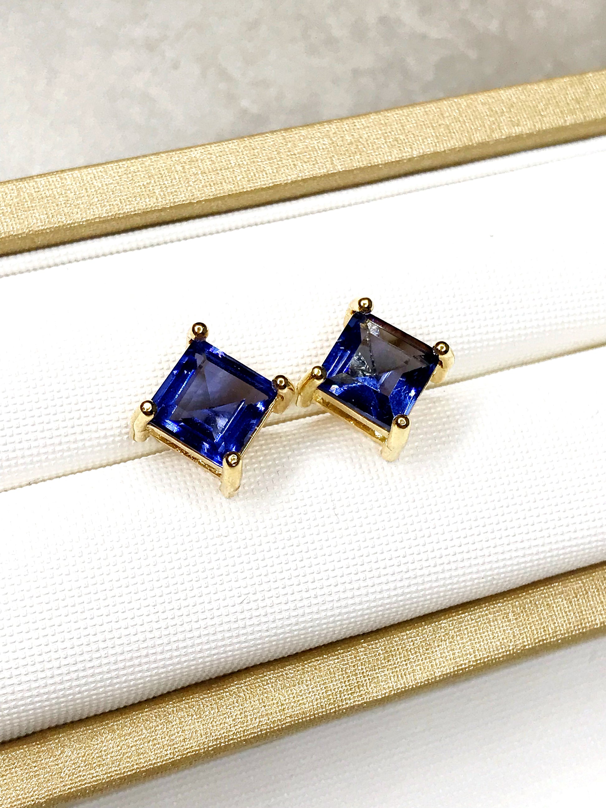 Gold Plated Sapphire Squared Crystal Earring 10mm.