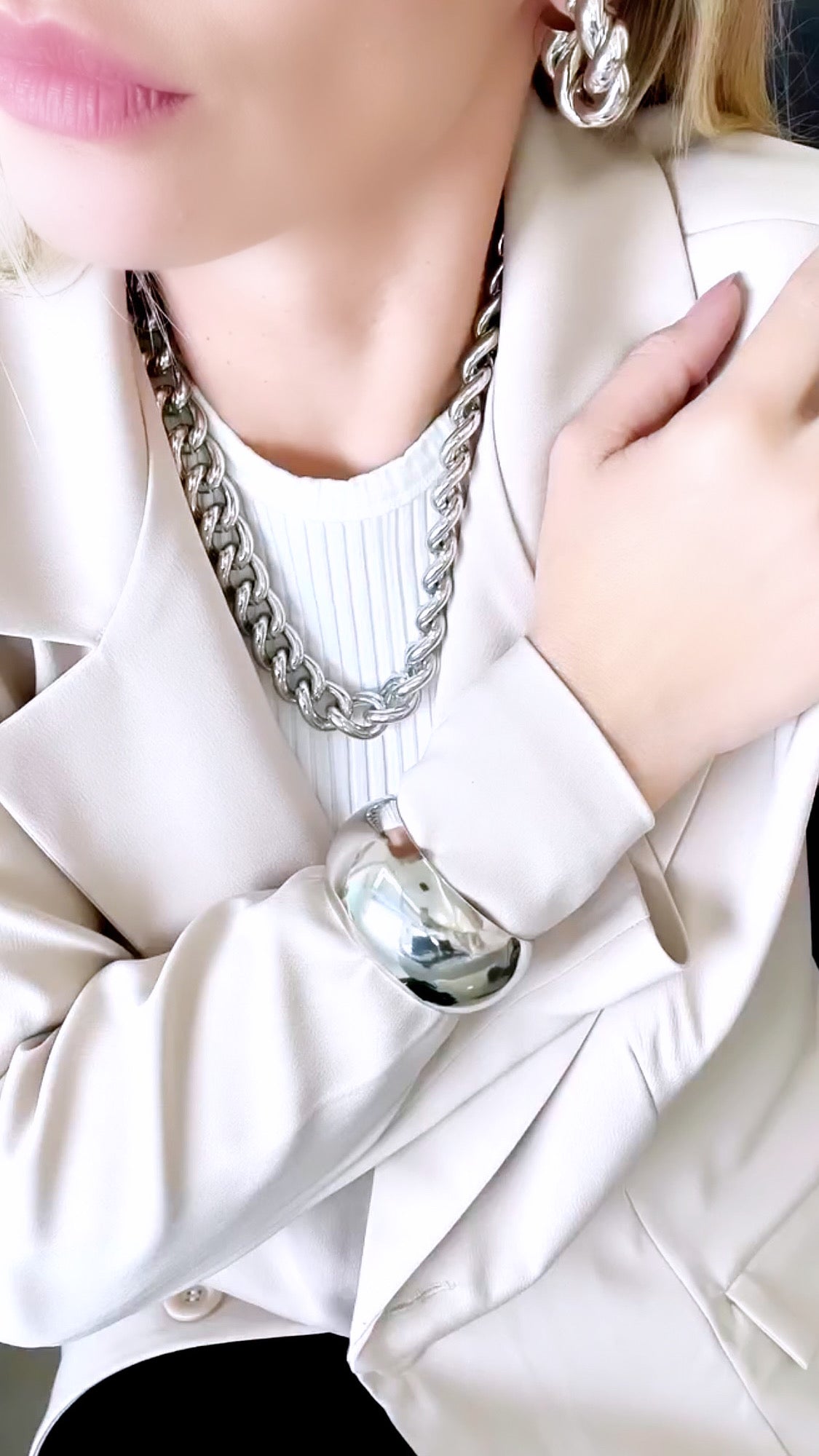 Plated Rhodium Sleek Dome Cuff Bracelet. Very adjustable to all wrists.