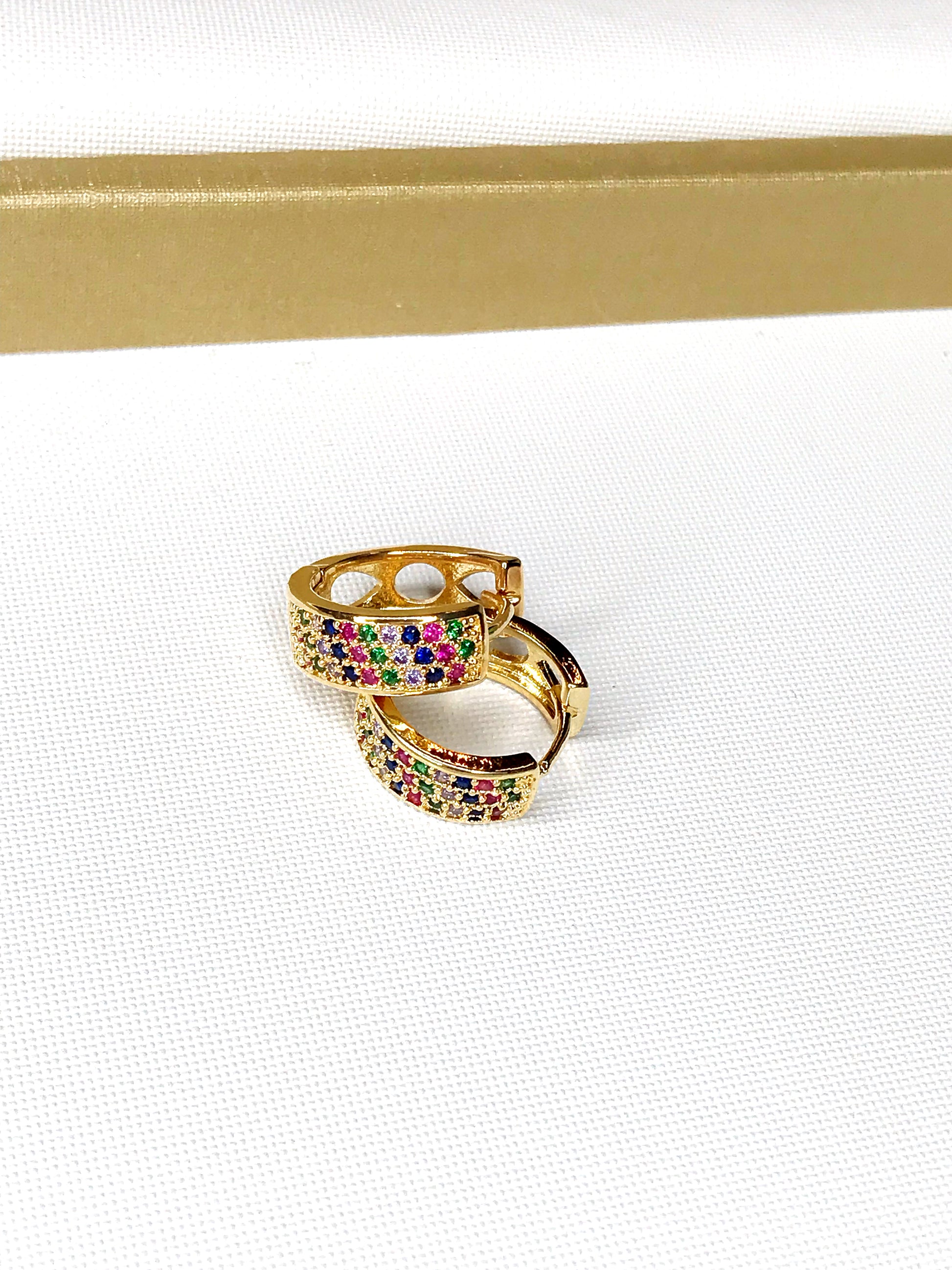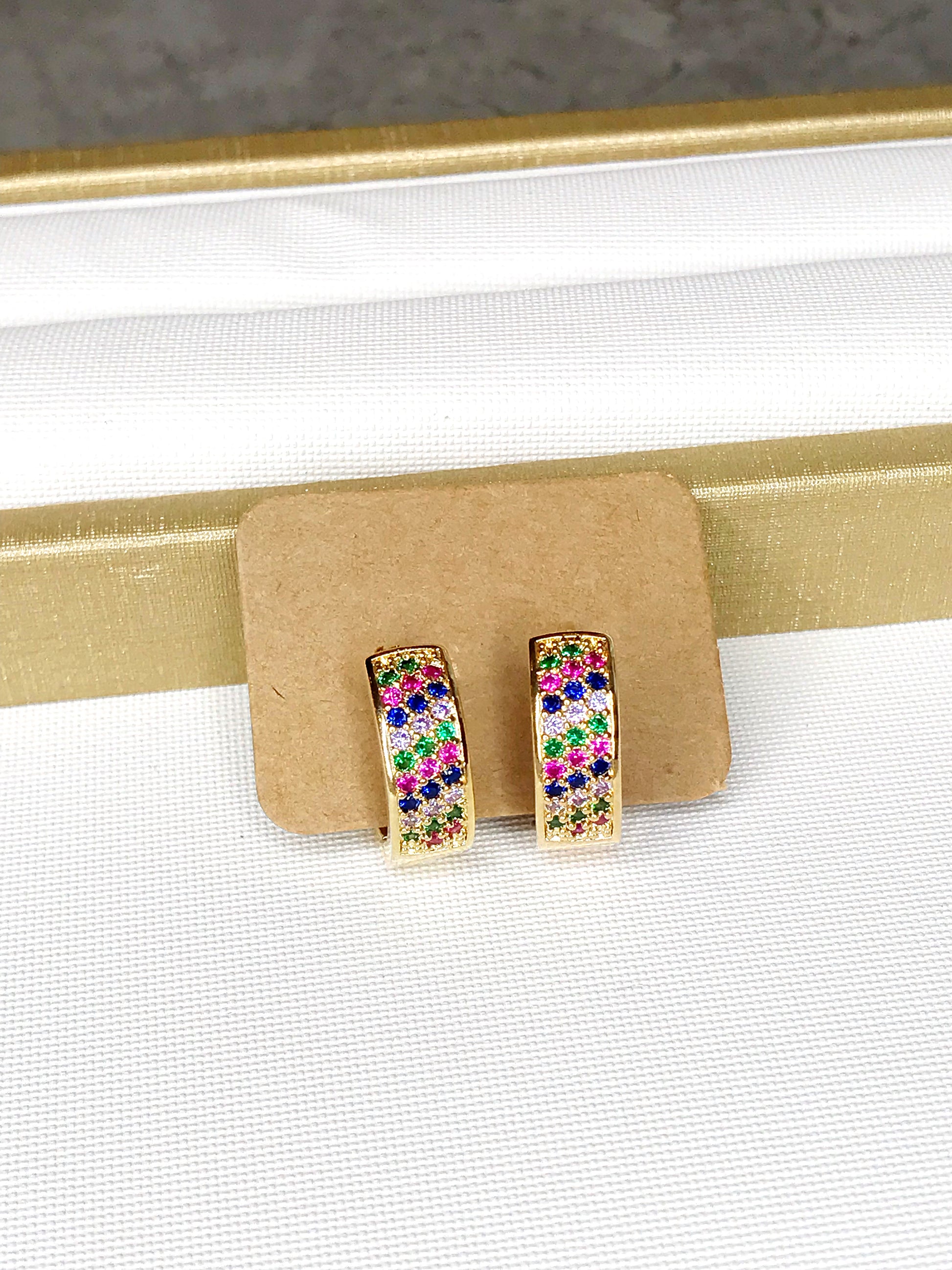Gold Plated Small Colored Pave Hoop Earring 15mm long 6mm wide
