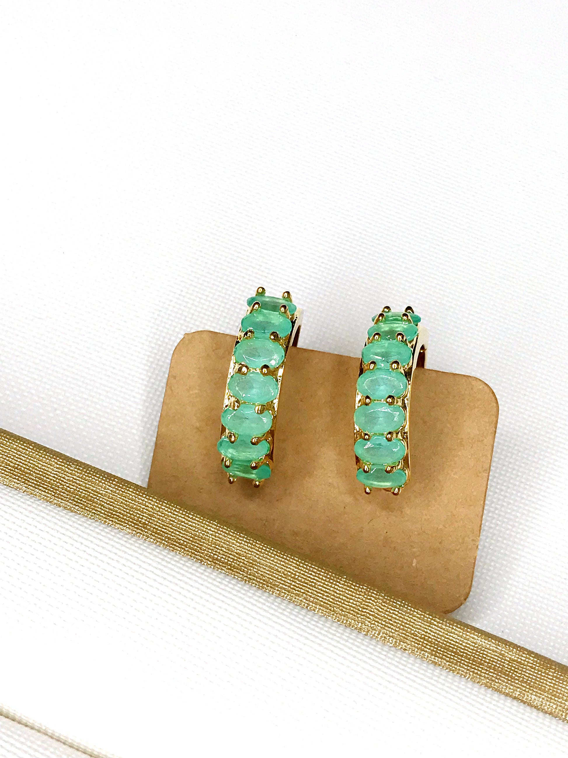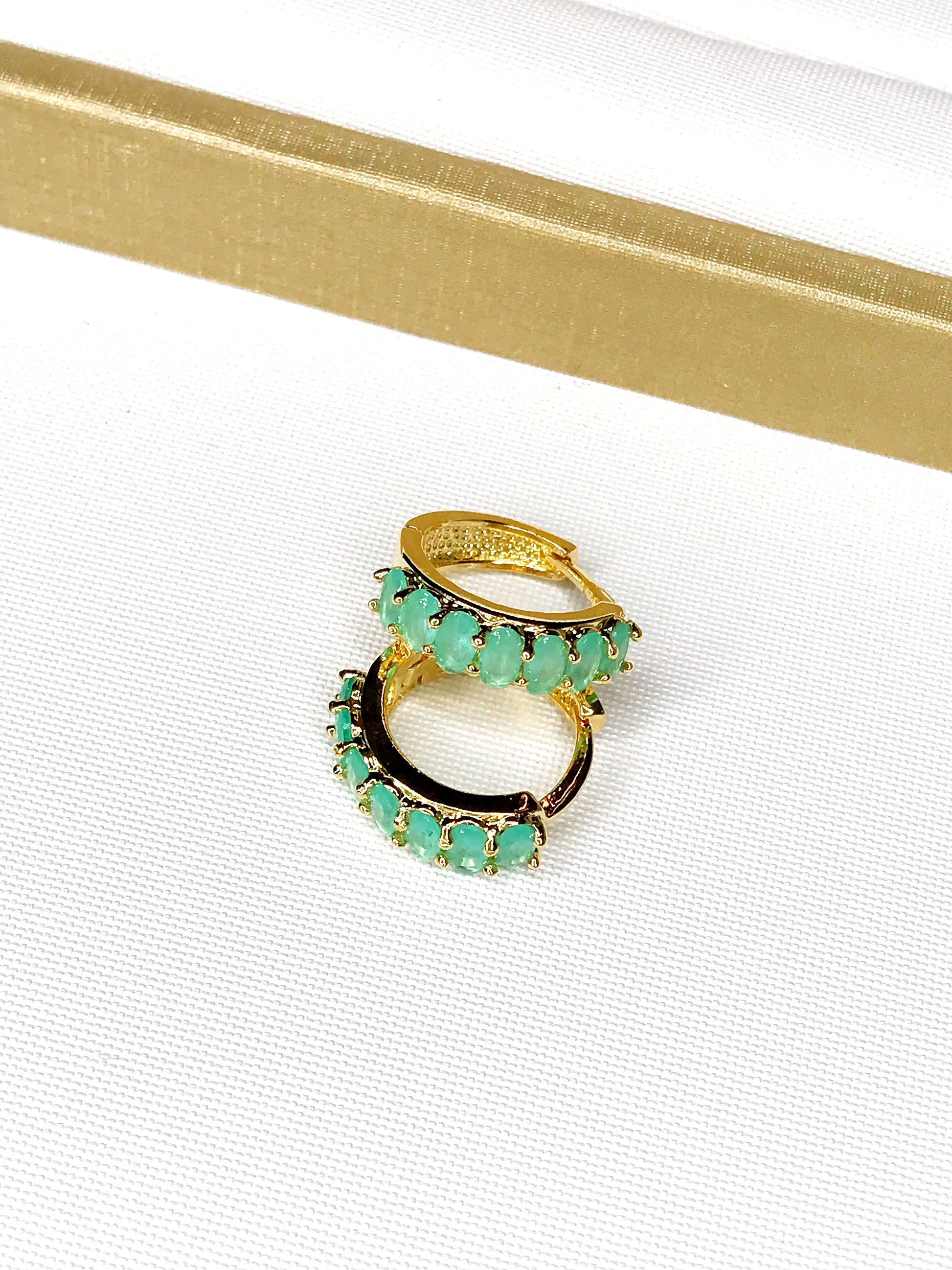 Gold Plated Small Jade Zirconia Pave Hoop Earring 17mm