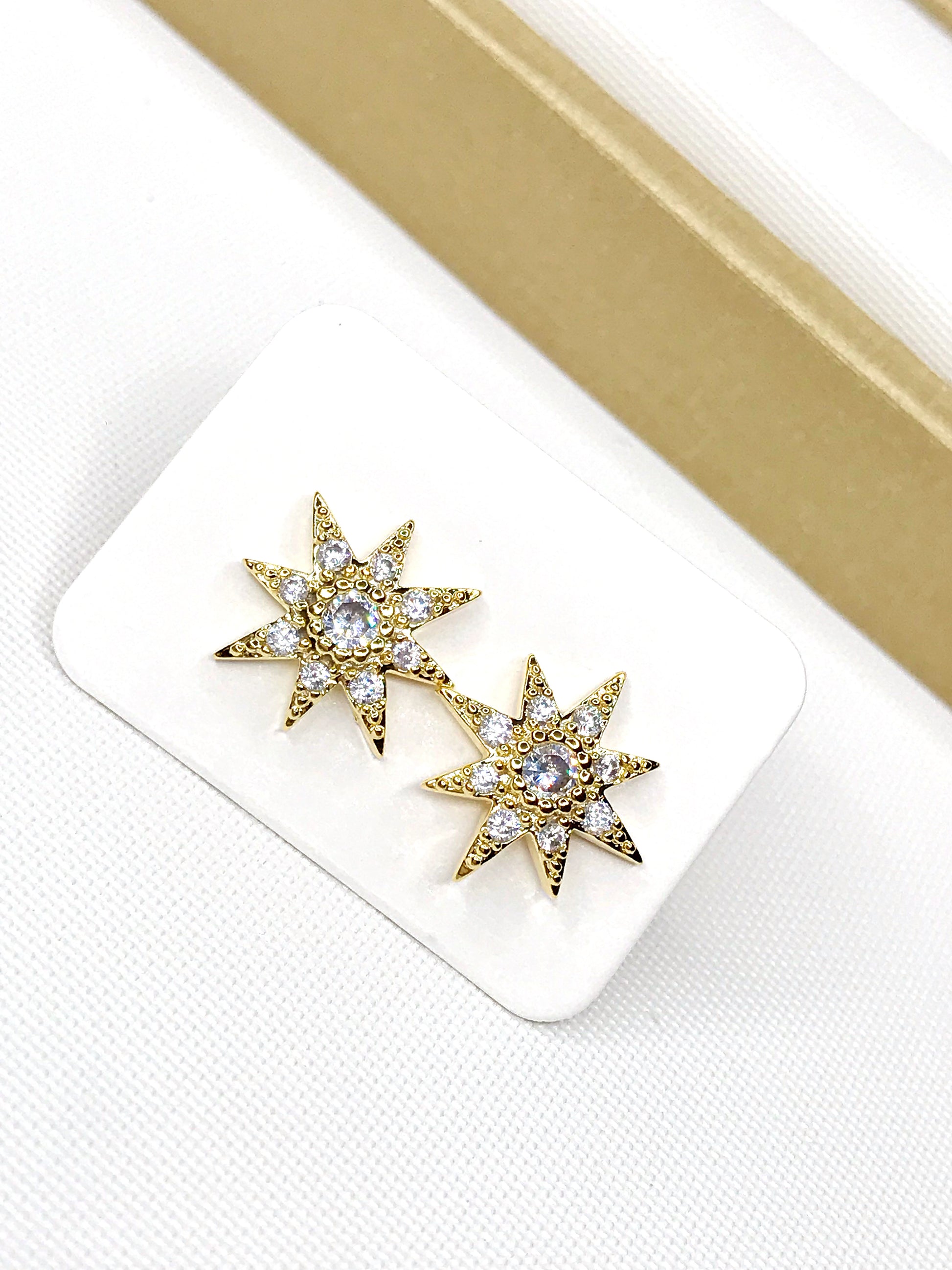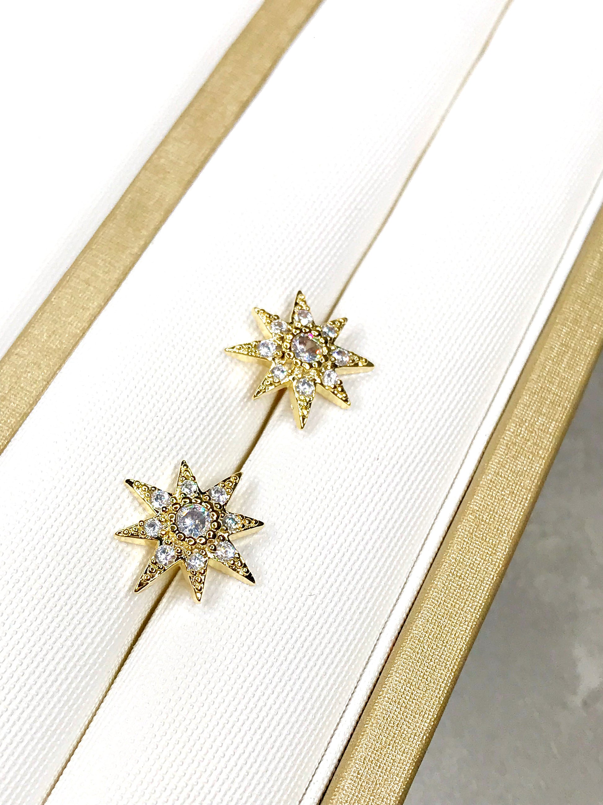Gold Plated Star Solitaire Earring. Studded with zirconia. 12MM