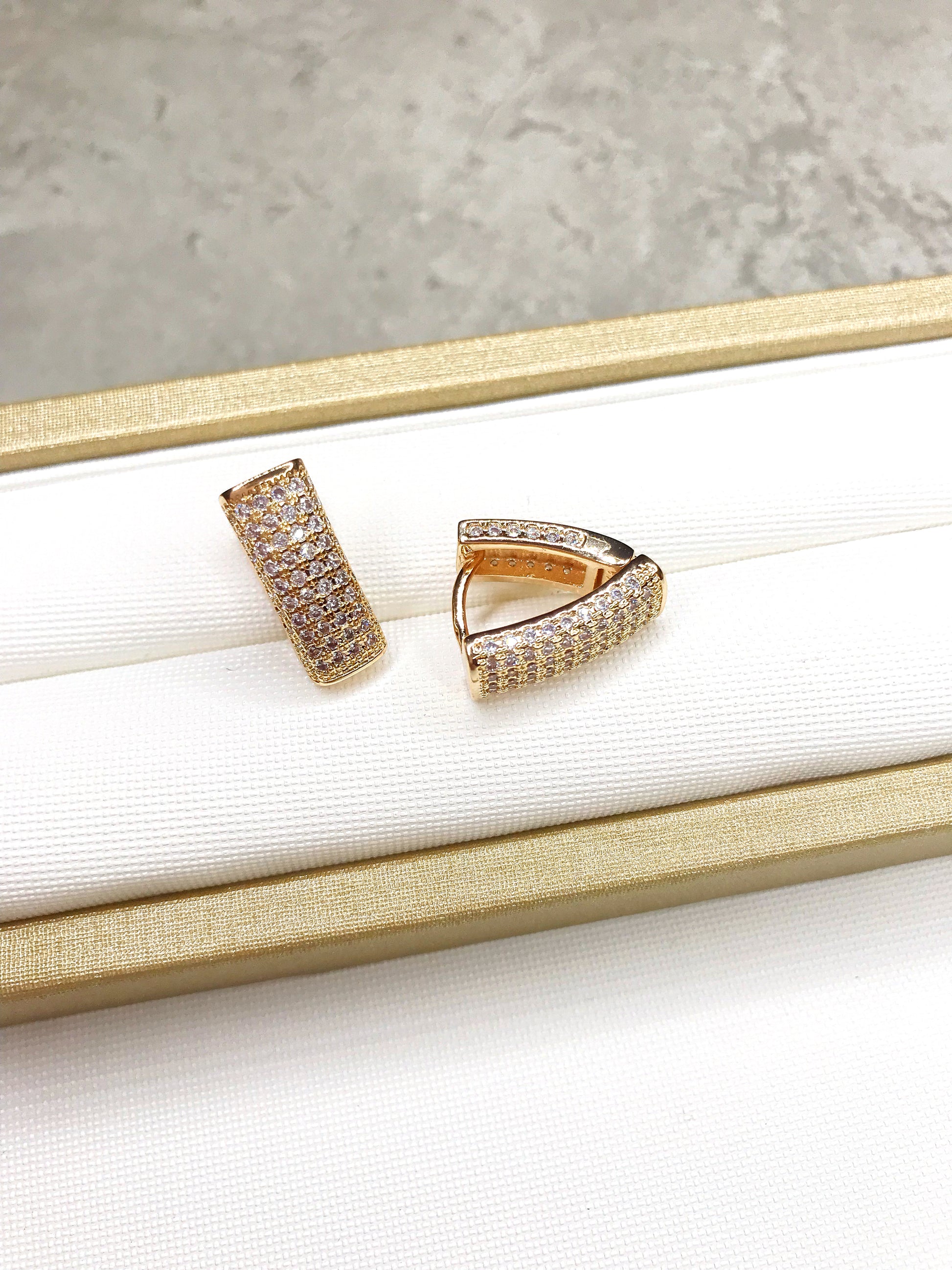 Gold Plated V Pave Earring. V shape hoop-style earrings fully tudded with Zirconias.