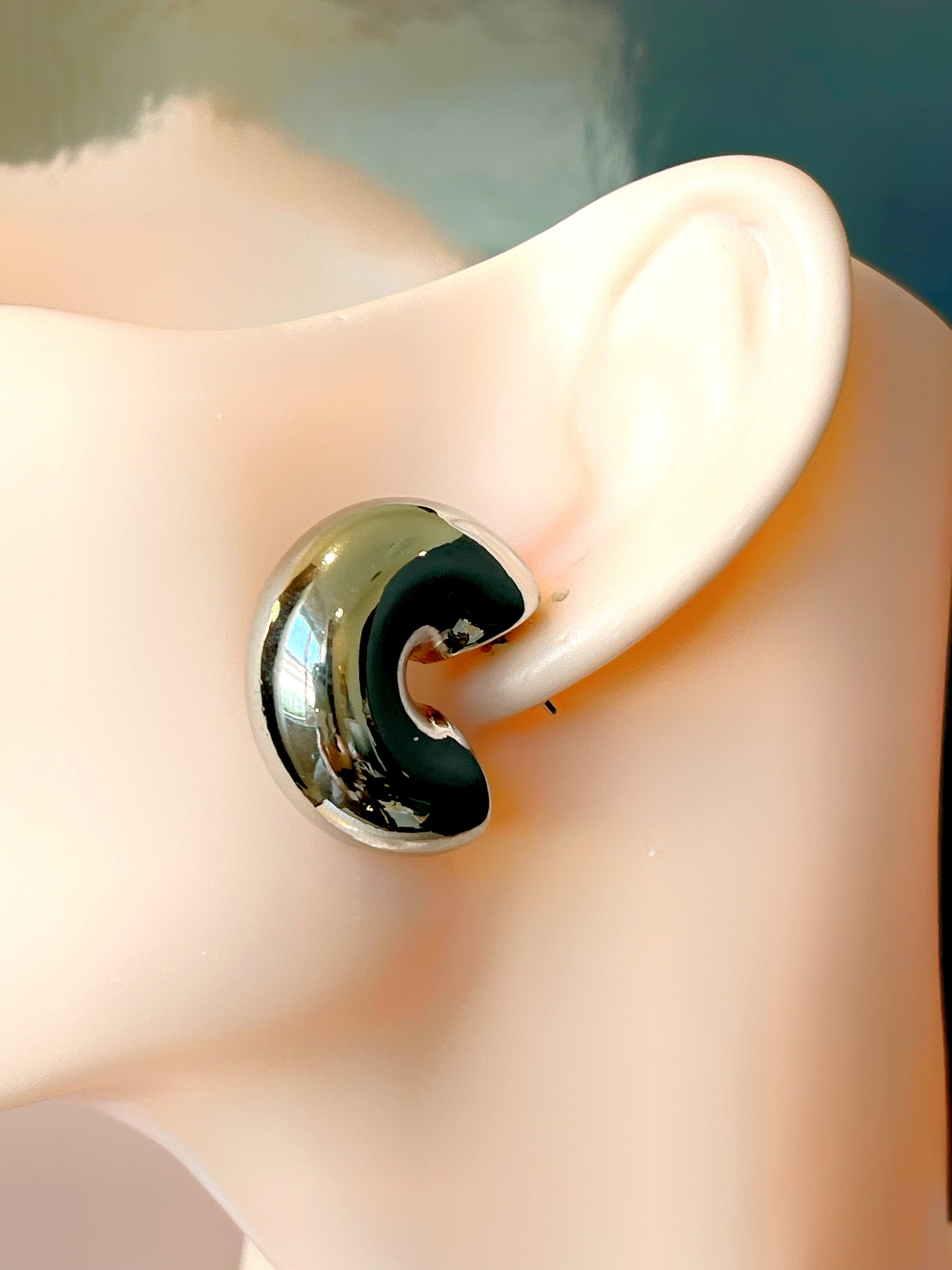 Rhodium or Gold Plated Wide Medium Tube Hoop Earring. 28X13MM Very Lightweight