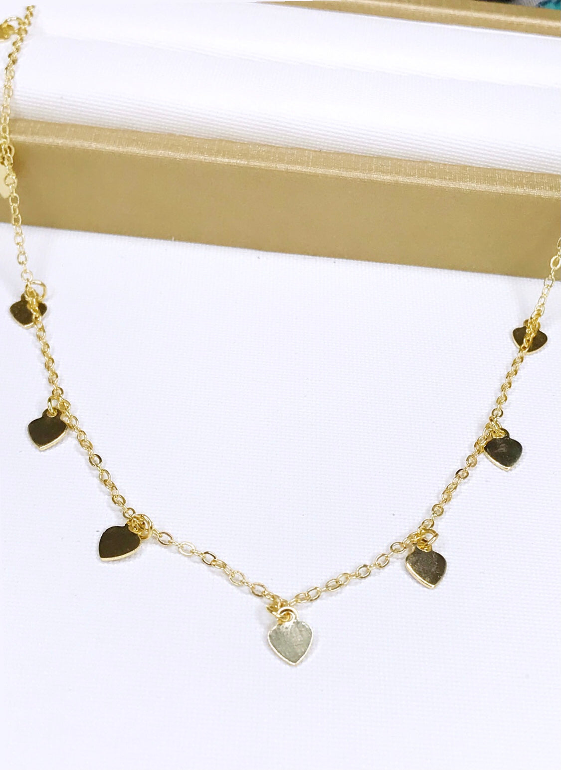 Gold Plated Flat Hearts Choker Necklace. The necklace is 33cm + 5cm extensor.