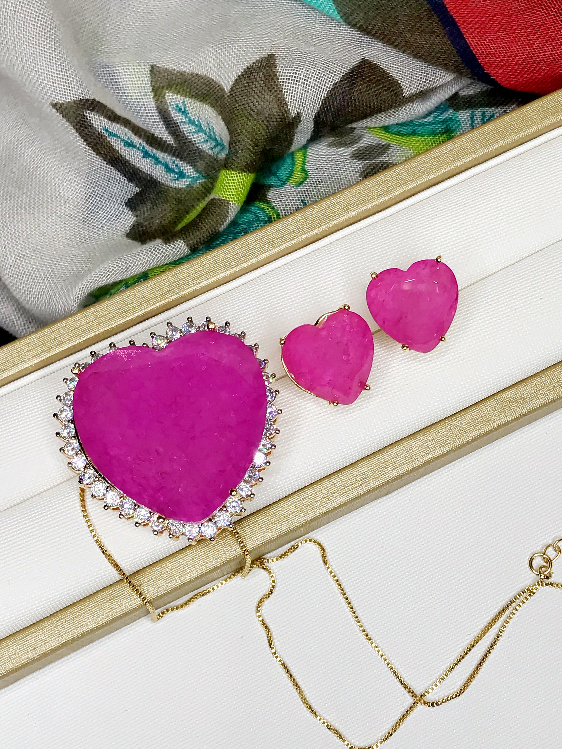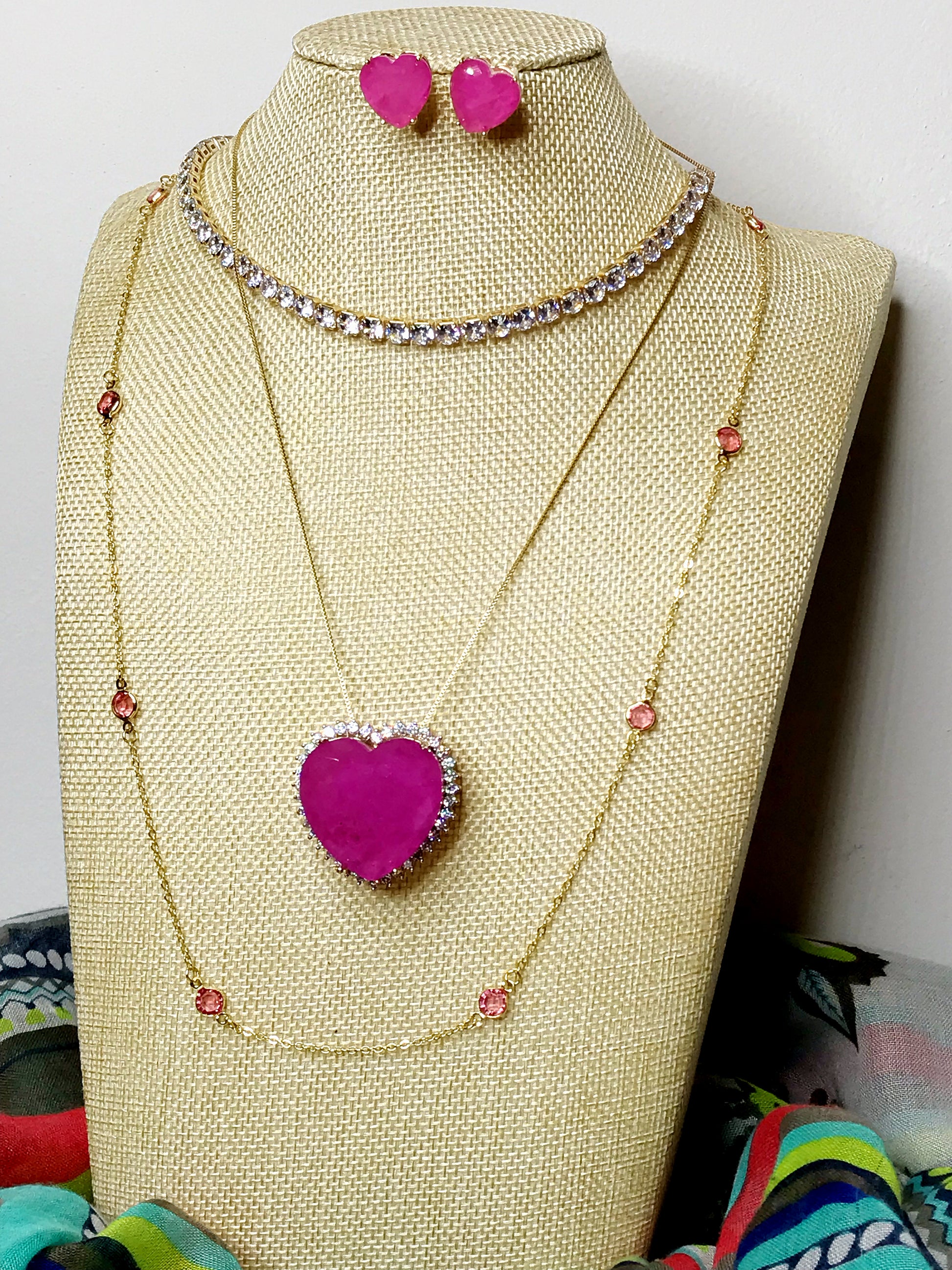 Maxi Heart Necklace and Earring Pink Tourmaline LabGemstone Set