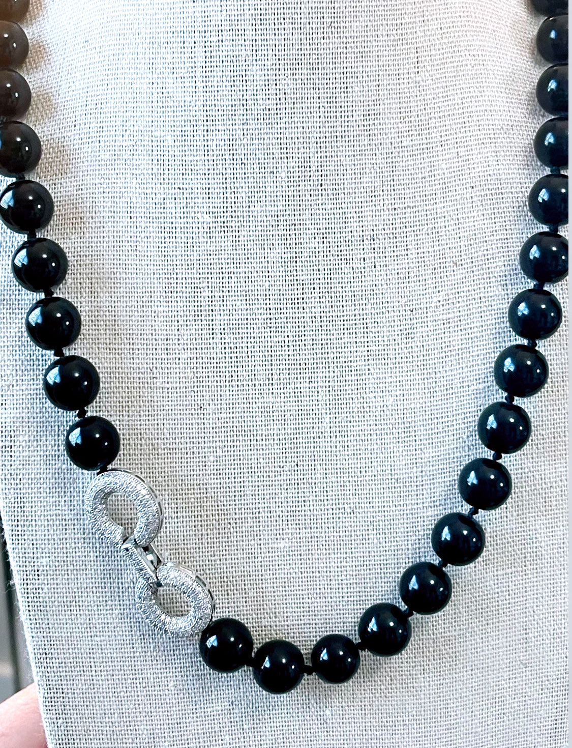 Infinity Black Agate Necklace 54cm. The pendant is 40mm