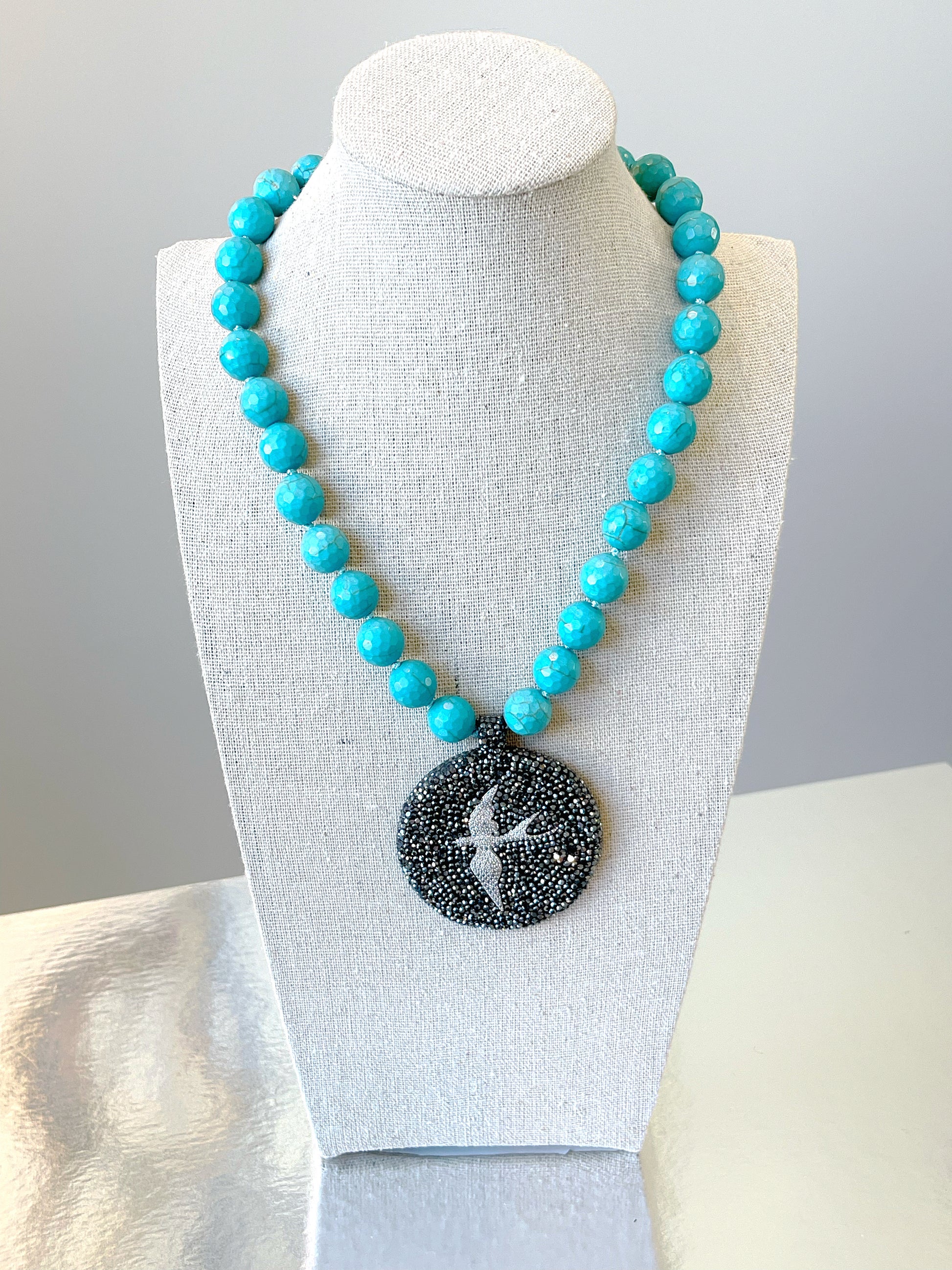 Mandala 12MM Turquoise Howlite Necklace 43cm. The pendant is 54mm