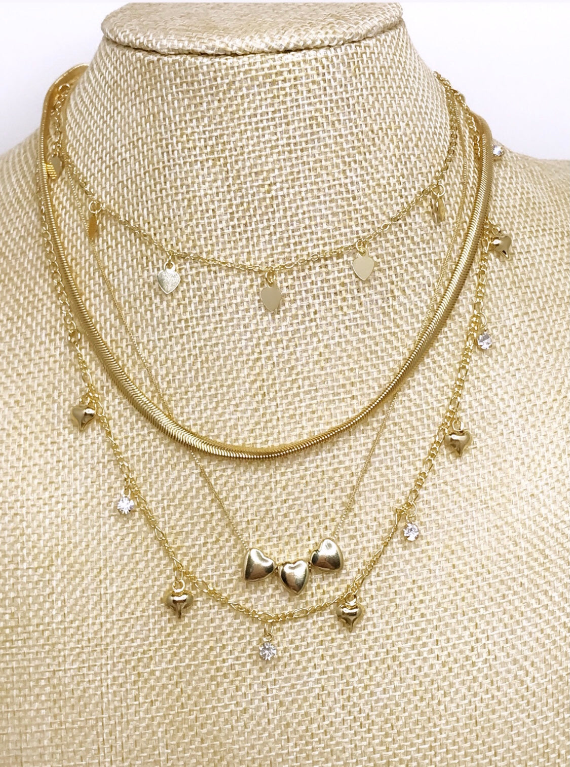Gold Plated Puffy Hearts & Crystals Choker Necklace. The necklace is 33cm + 5cm extensor.